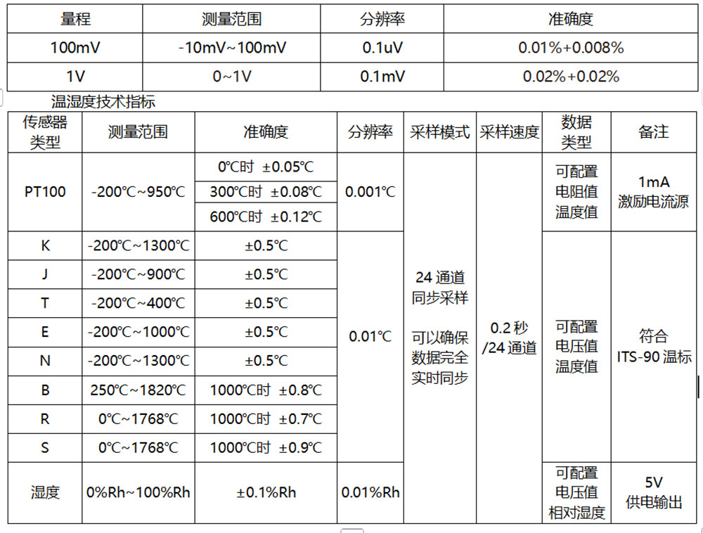 2、  24通道均可独立配置为热电偶、铂电阻、湿度传感器和模拟量输入模式